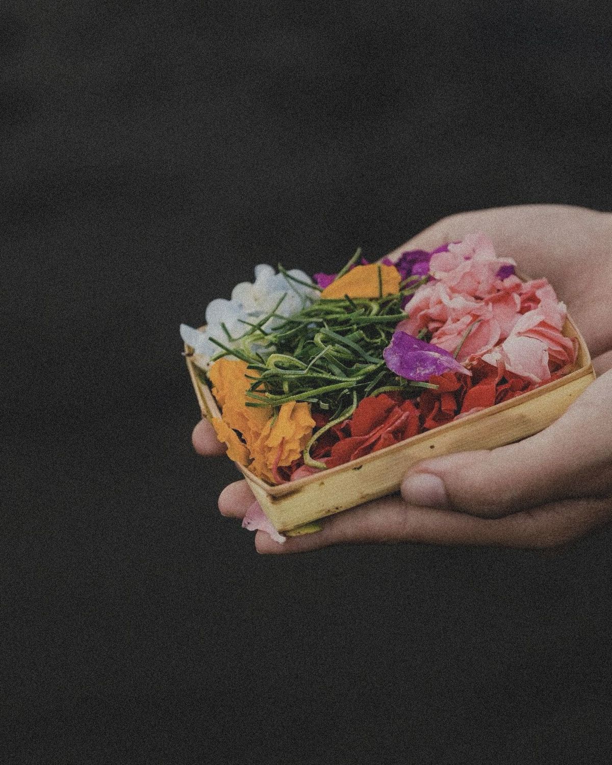 Living in Bali deepened this. "Here, there's Hinduism, and every Balinese person wakes up every morning and does a ceremony in the place where they live. They give these small offerings on a bamboo leaf, bow, pray, light incense every day in their home. It's gratitude for being able to be here, to use this land, etc."